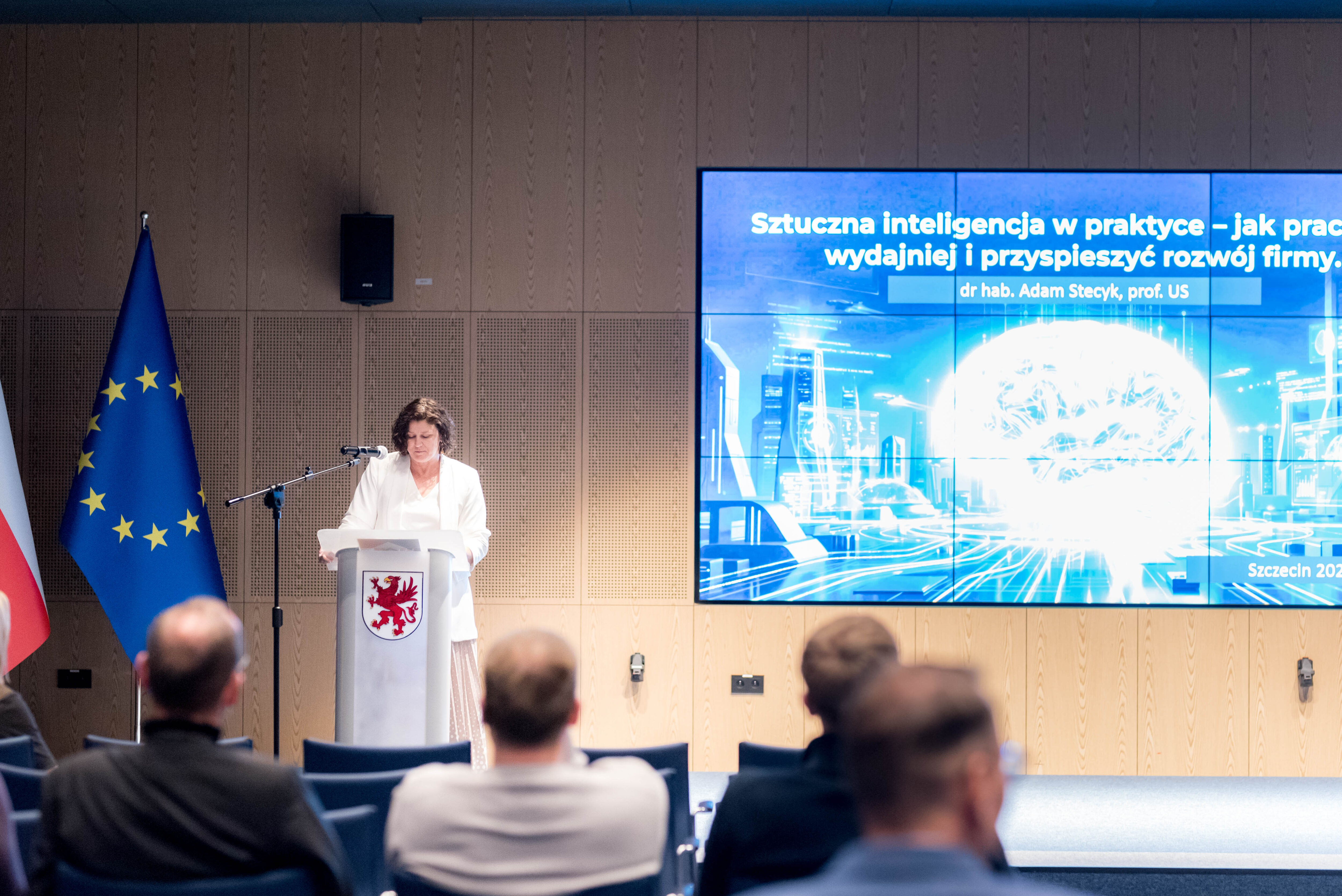 W dniu 23 kwietnia 2026 roku w Urzędzie Marszałkowskim w Szczecinie, w Sali Delfin, odbyło się szkolenie pn. „Sztuczna inteligencja w praktyce – jak pracować wydajniej i przyspieszyć rozwój firmy”.